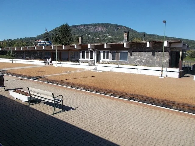 Badacsonytomaj Railway Station: Built in 1971, this small station, a brutalist-inspired rectangular building with a flat roof comprised of wooden planks, is big in scope. Thanks to the quarry that once operated in Badacsonytomaj, basalt stone was used to tile the station’s walls.